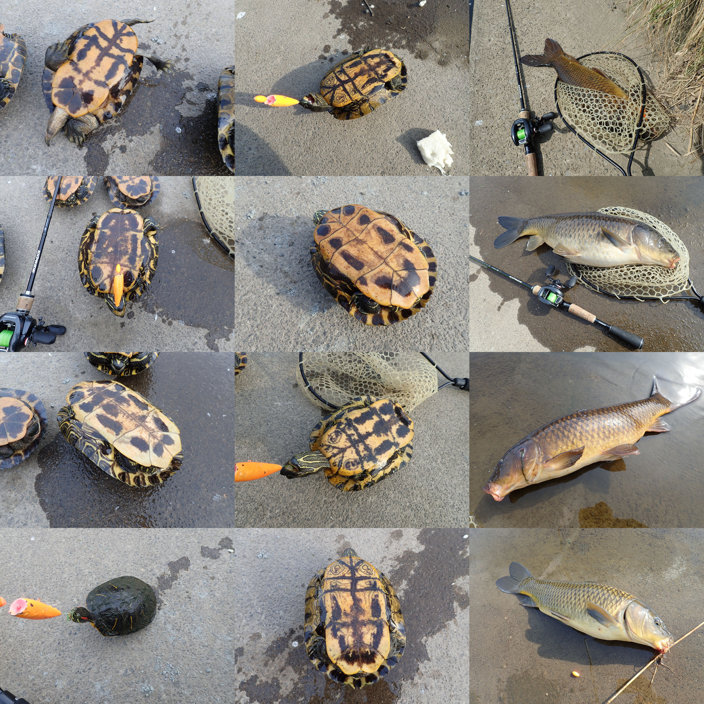 コイ*4 (50-60cm), アカミミガメ*9