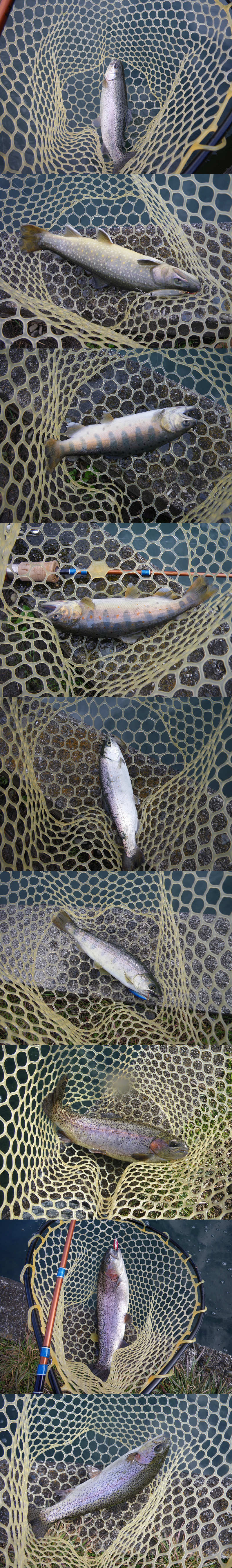レインボー*10, イワナ*2, ヤマメ*2, アマゴ*3 (20-40cm弱)