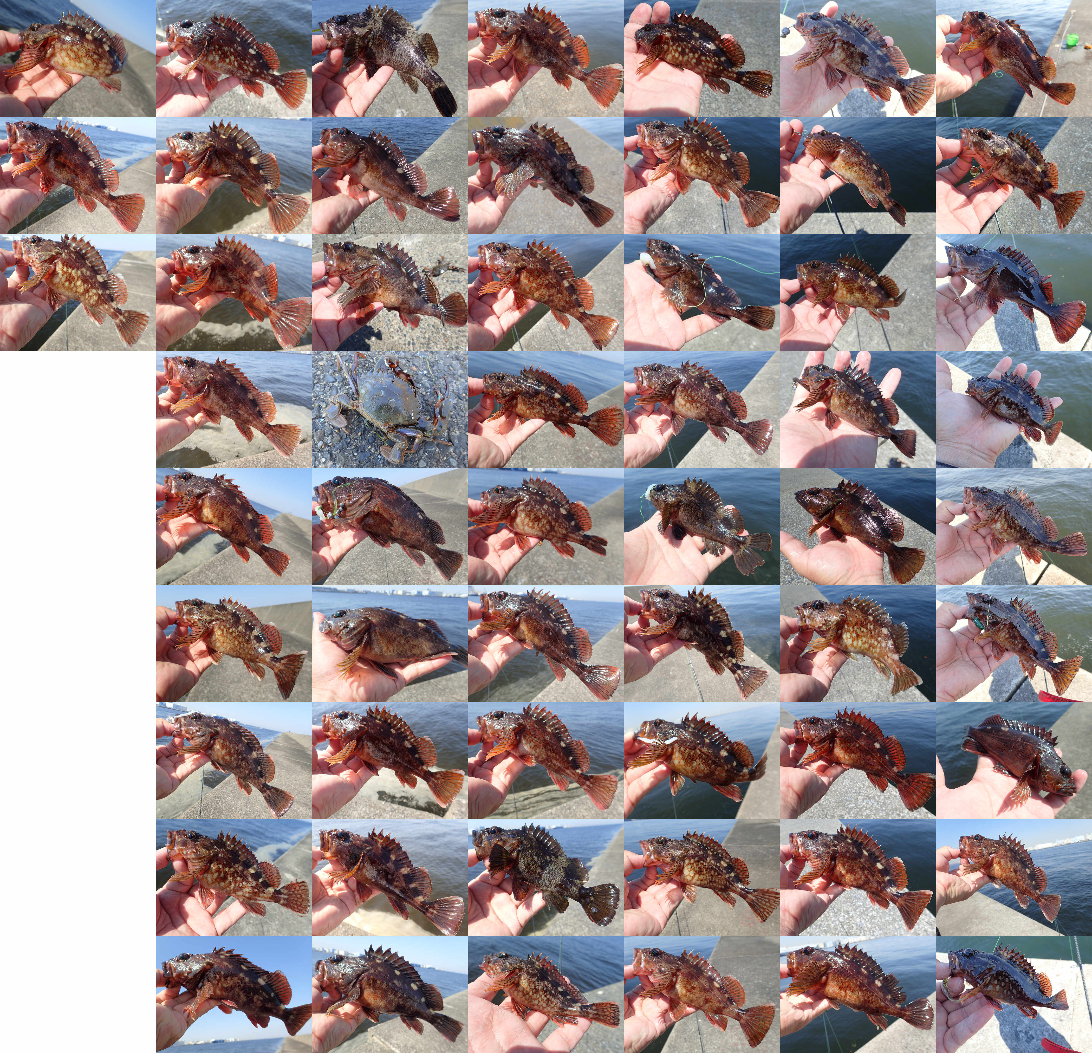 カサゴ*53(10-25cm),ムラソイ*3,イシガニ*1