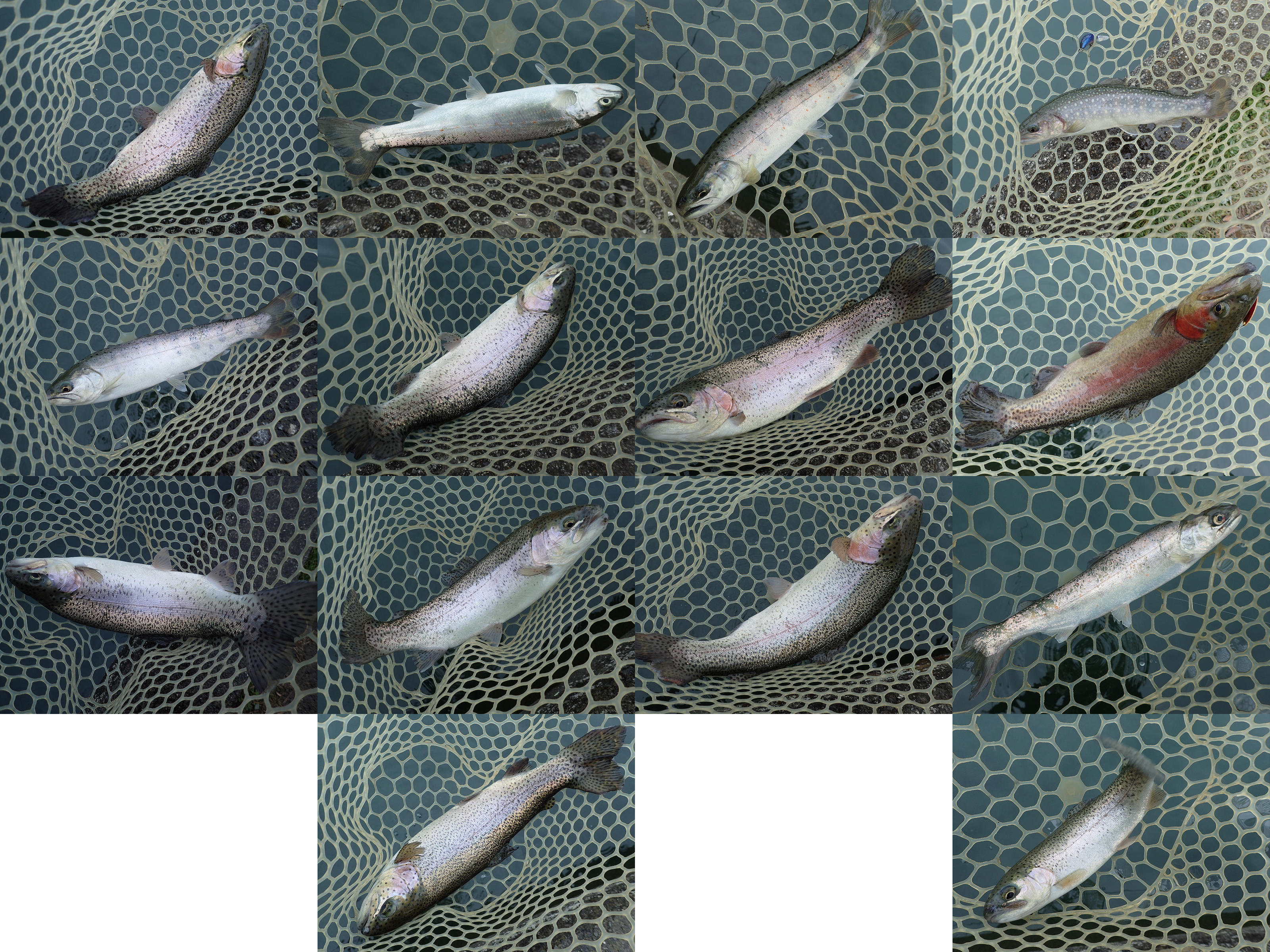 ニジマス*9 (20-30cm), ヤマメ*1, アマゴ*3, イワナ*1