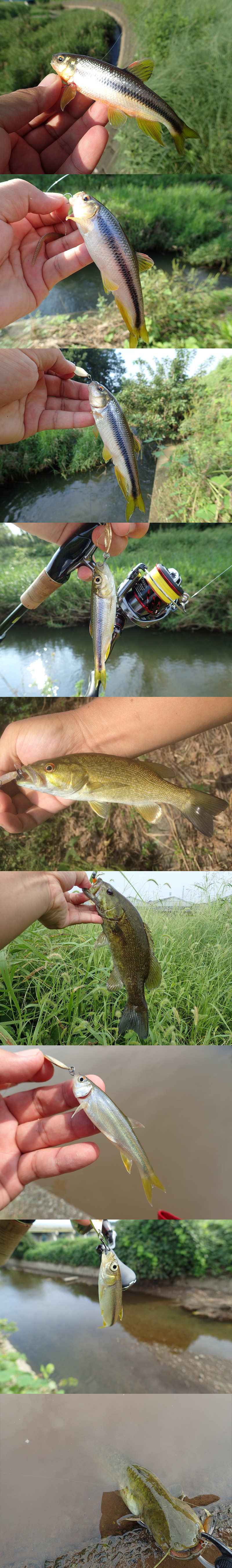 カワムツ*6, バス*2 (15-25cm), ナマズ*4ヒット1キャッチ(40cm)
