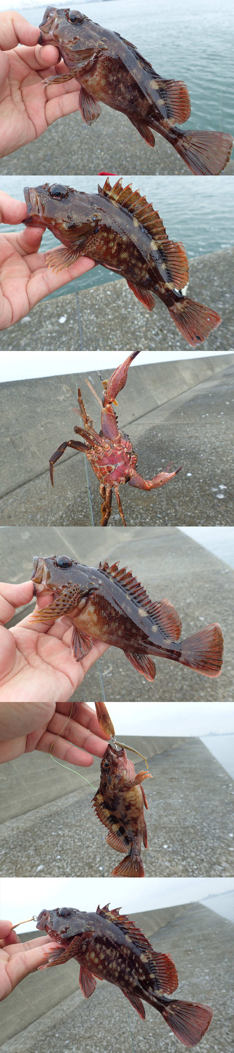 カサゴ*13, ムラソイ*2 (10-20cm), ナマコ*1, カニ*2